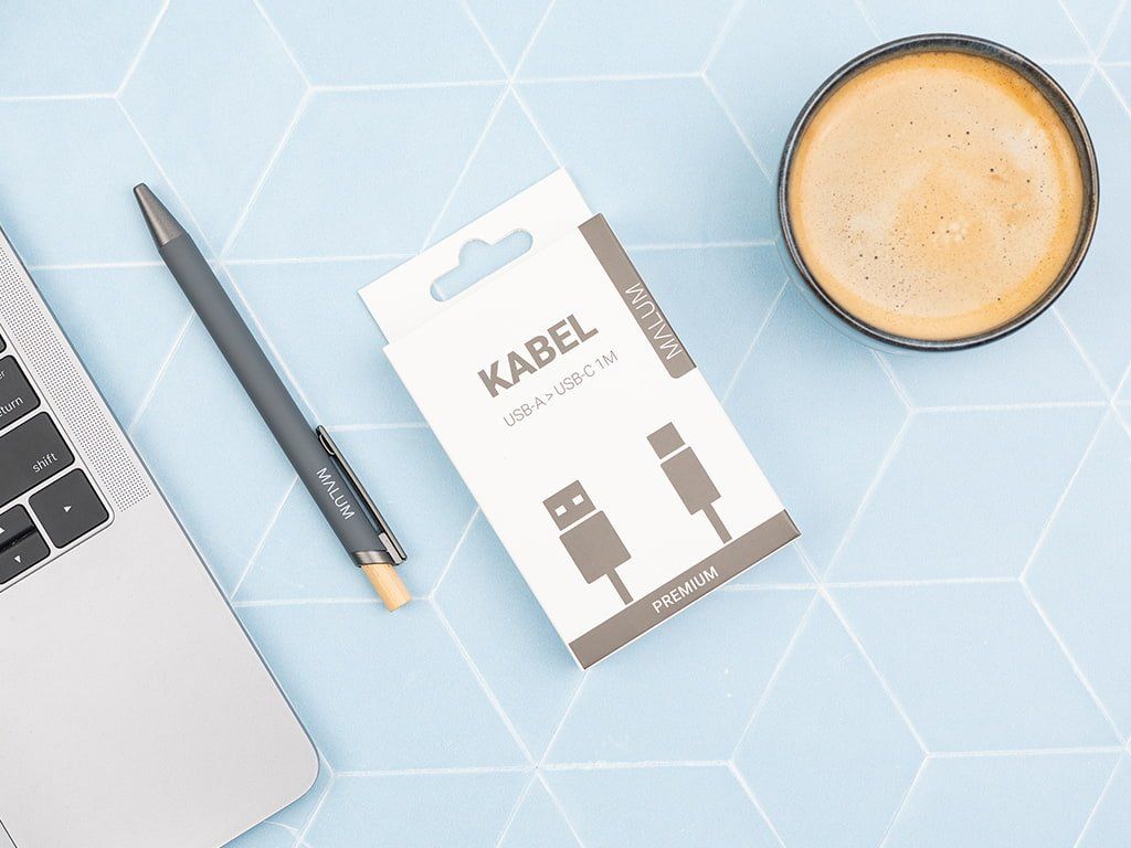 Kabely jsou prodávány v balení s jednotným designem a rozměry, které při vystavení působí přehledně a prémiově. |