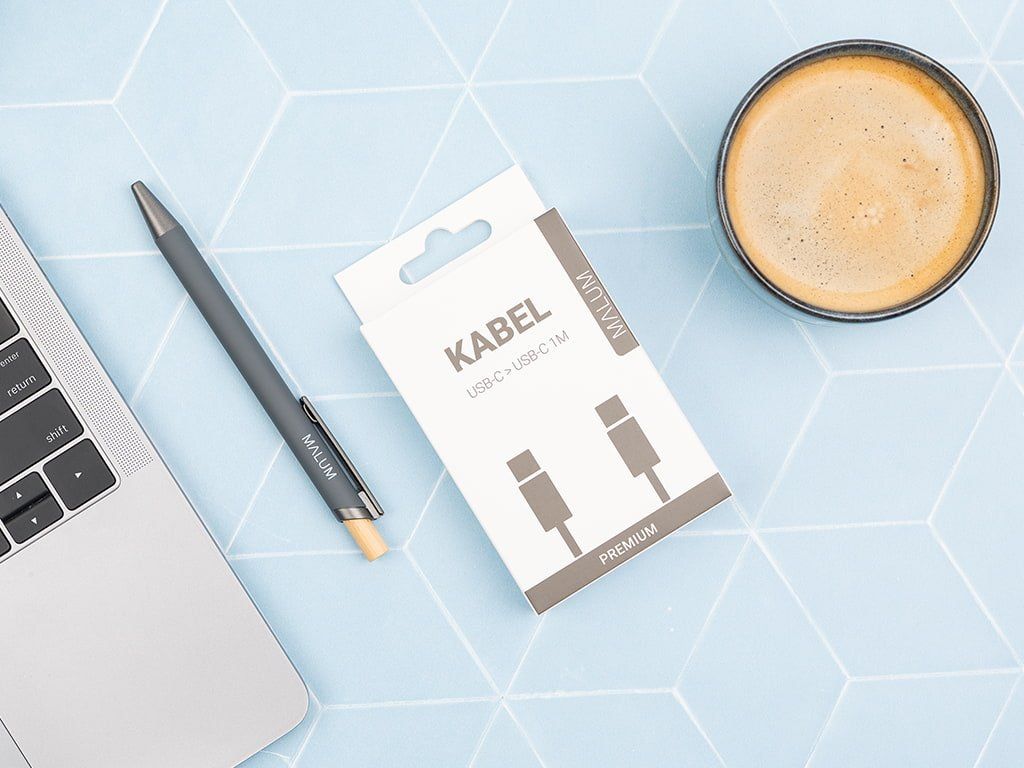 Kabely jsou prodávány v balení s jednotným designem a rozměry, které při vystavení působí přehledně a prémiově. |